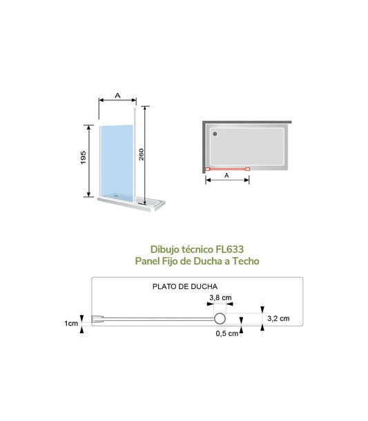 MAMPARA DUCHA FIJA FRESH LEVANTE NEGRO MATE FL633 05