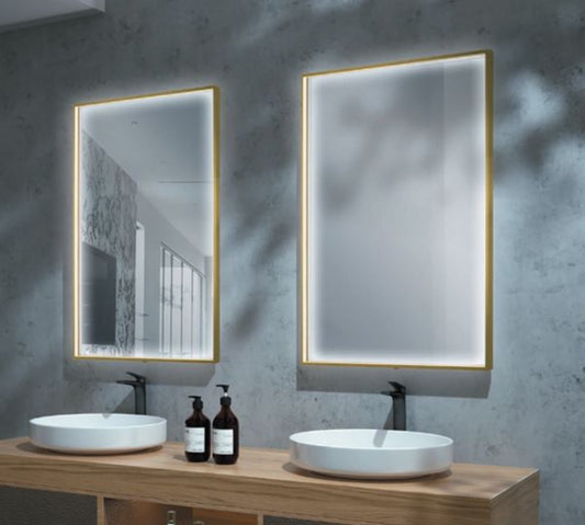 ESPEJO BAÑO RECTANGULAR LED, ORO CEPILLADO ANTIVAHO MOD. CALIFORNIA