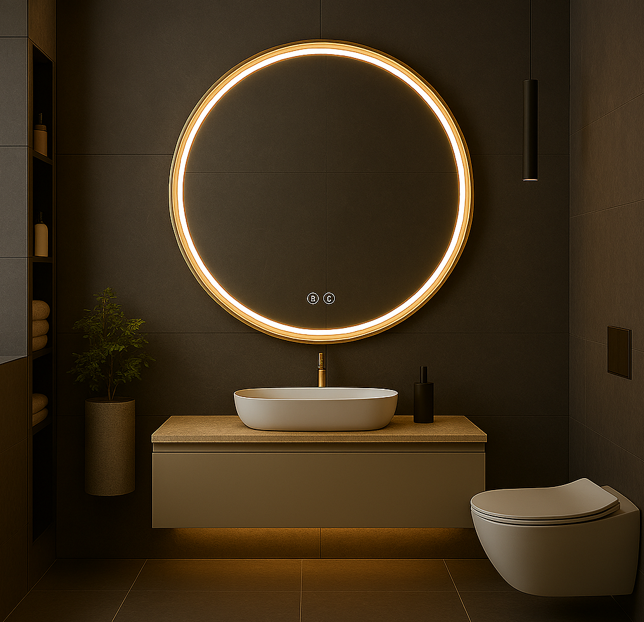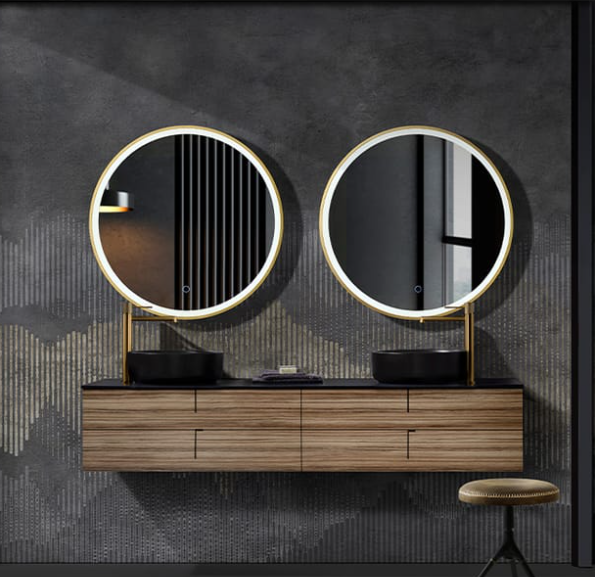 ESPEJO BAÑO REDONDO LED, MARCO NEGRO MATE, ORO ROSA, ORO CEPILLADO-MOD. PARIS